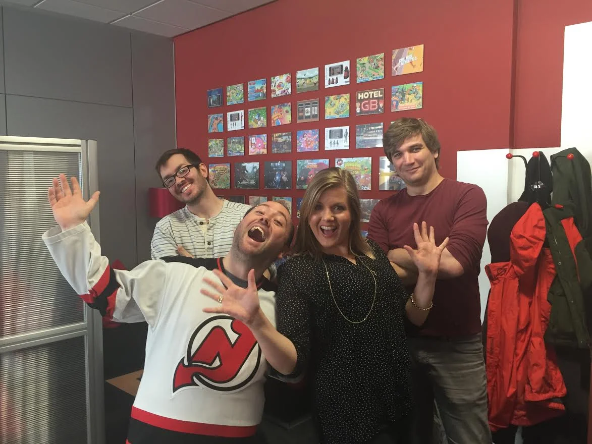 Acronyms galore for our next team, whose full name is distinctly NSFW and not fit for publication on a family-friendly website. #BSD will be using GearVR to deliver a creepy cat-and-mouse game where you (the rodent) must grab the cheese and sneak past your feline foe. You only get one piece of cheese according to designer Carlos Salvado, so you'd better keep your wits about you. Will artist Lara Bendoris come up with a suitably intimidating moggy foe? Will programmers David Andrews and Davie Farrell drink enough Lucozade to stay awake until tomorrow? Keep an eye on our blog to find out!